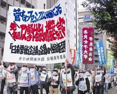 En Japón, estamos luchando para aplastar las ofensivas que ha lanzado el gobierno liderado por YoshihideSuga para fortalecer el sistema de gobierno neofascista. Los Zengakuren y los Comités de Juventud Anti-Guerra se levantaron en manifestaciones decididas en todo el país en octubre. ¡Camaradas de todo el mundo, luchemos unidos más allá de las fronteras!