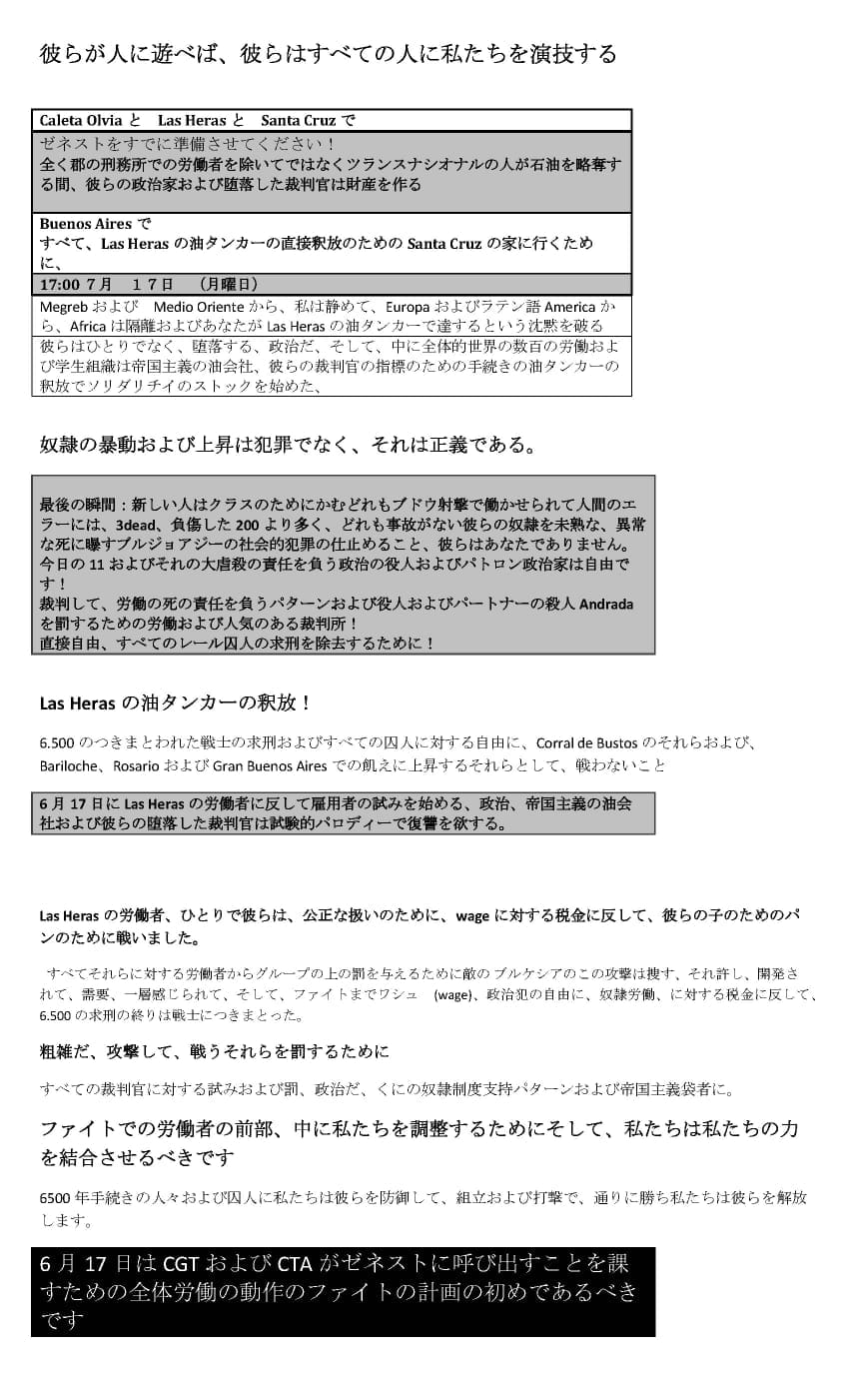 Desde Japón hacen llegar su saludo internacionalista los revolucionarios de la Liga Comunista Revolucionaria de Japón – Fracción Marxista Revolucionaria junto a los jóvenes combatientes del movimiento Zengakuren, a 8 años de la brutal condena a cadena perpetua y cárcel a los obreros petroleros de Las Heras