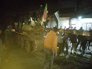 El ejército de soldados de Al Assad reclutados de forma forzosa estos años, se pasan a la rebelión. Muchos de ellos son enviados a sus casas en paz por los milicianos. Los oficiales cobardes huyeron.