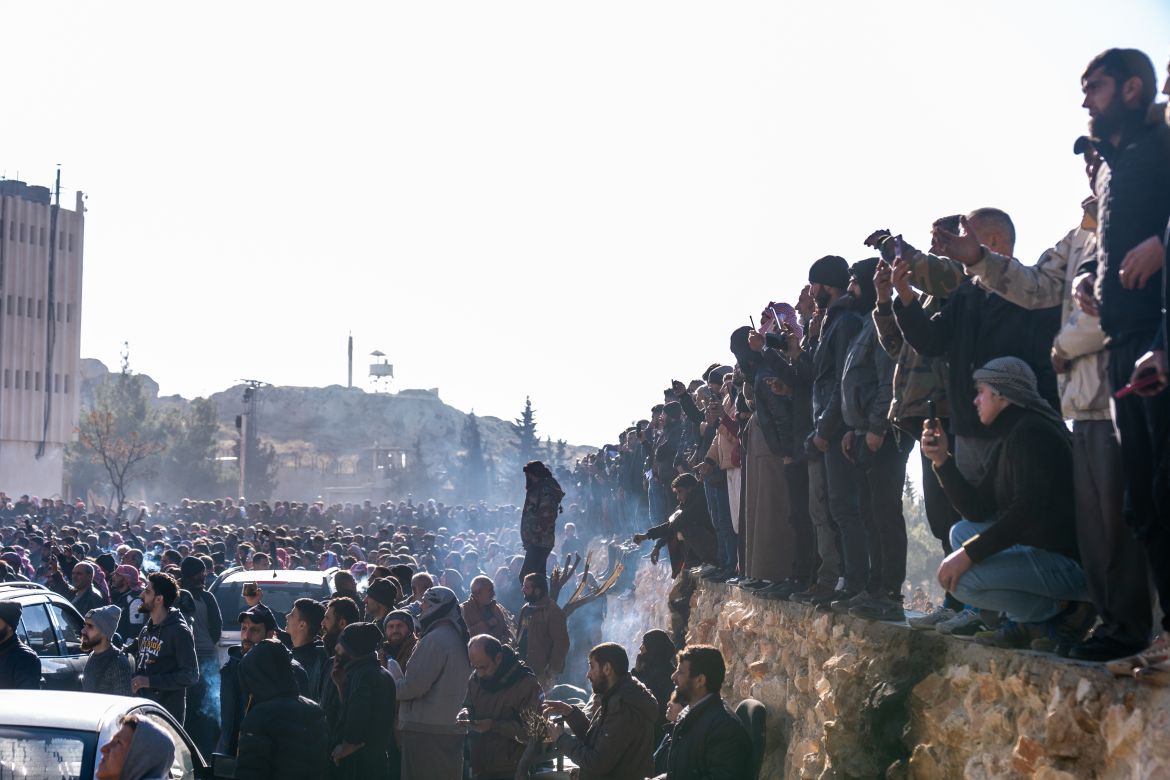 Al cumplirse un año de la caída de Al Assad, desde el inicio de la lucha que terminara con la caída de este perro fascista hasta el día que cayó, se desarrollaron enormes marchas por toda Siria, levantando en alto este triunfo que fue la caída de un régimen genocida asesino y también con las consignas aún inconclusas de la revolución como recuperar las viviendas, pan, trabajo, y también recuperar la nación expulsando a todas las tropas invasoras, principalmente al sionismo. Por eso tomaron en sus manos las banderas palestinas y enfrentaron la agresión sionista en el sur de Siria marchando por la liberación de Gaza y el fin del estado ocupante.
