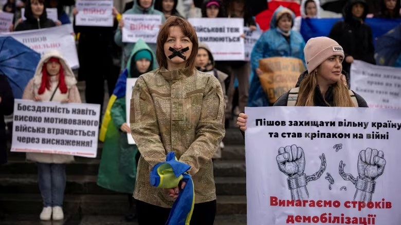 Diciembre 2023. Protesta en Kiev, encabezada por las mujeres de Ucrania, exigiendo el fin del servicio militar indefinido