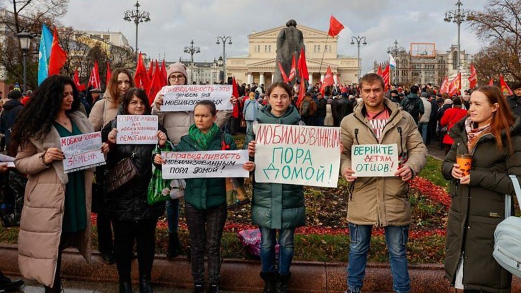 Esposas y familiares de los movilizados rusos piden el regreso a casa de sus seres queridos, Moscú, noviembre 2023